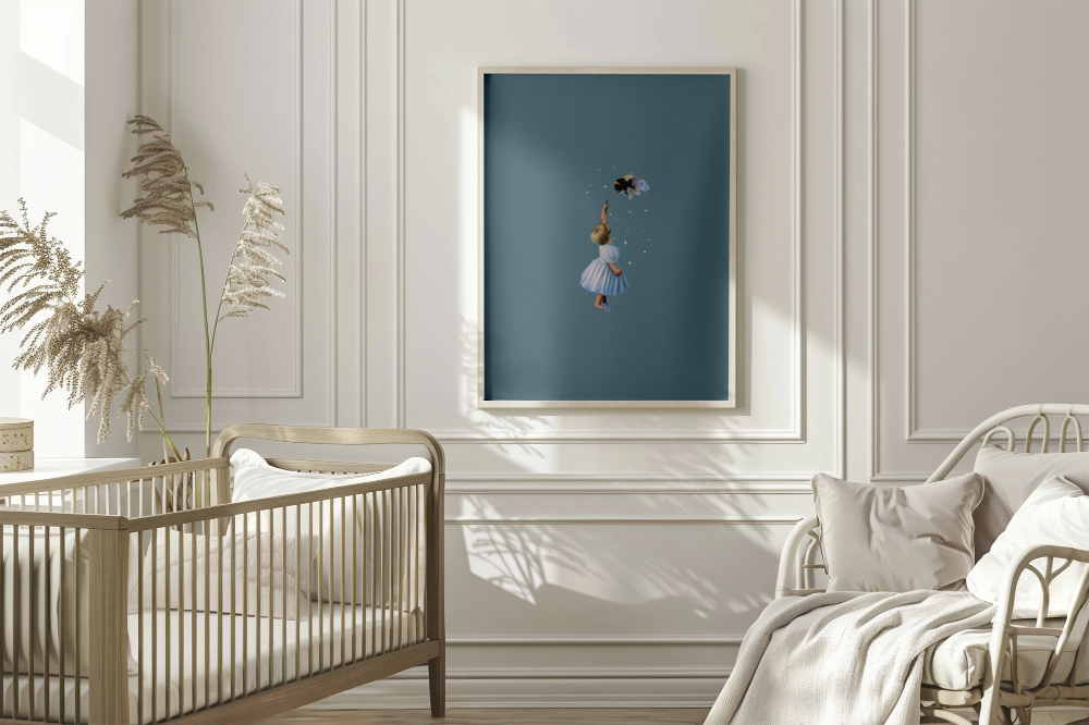 Baby and the Bee Wooden Framed Print 60x90 cm / 24x36″