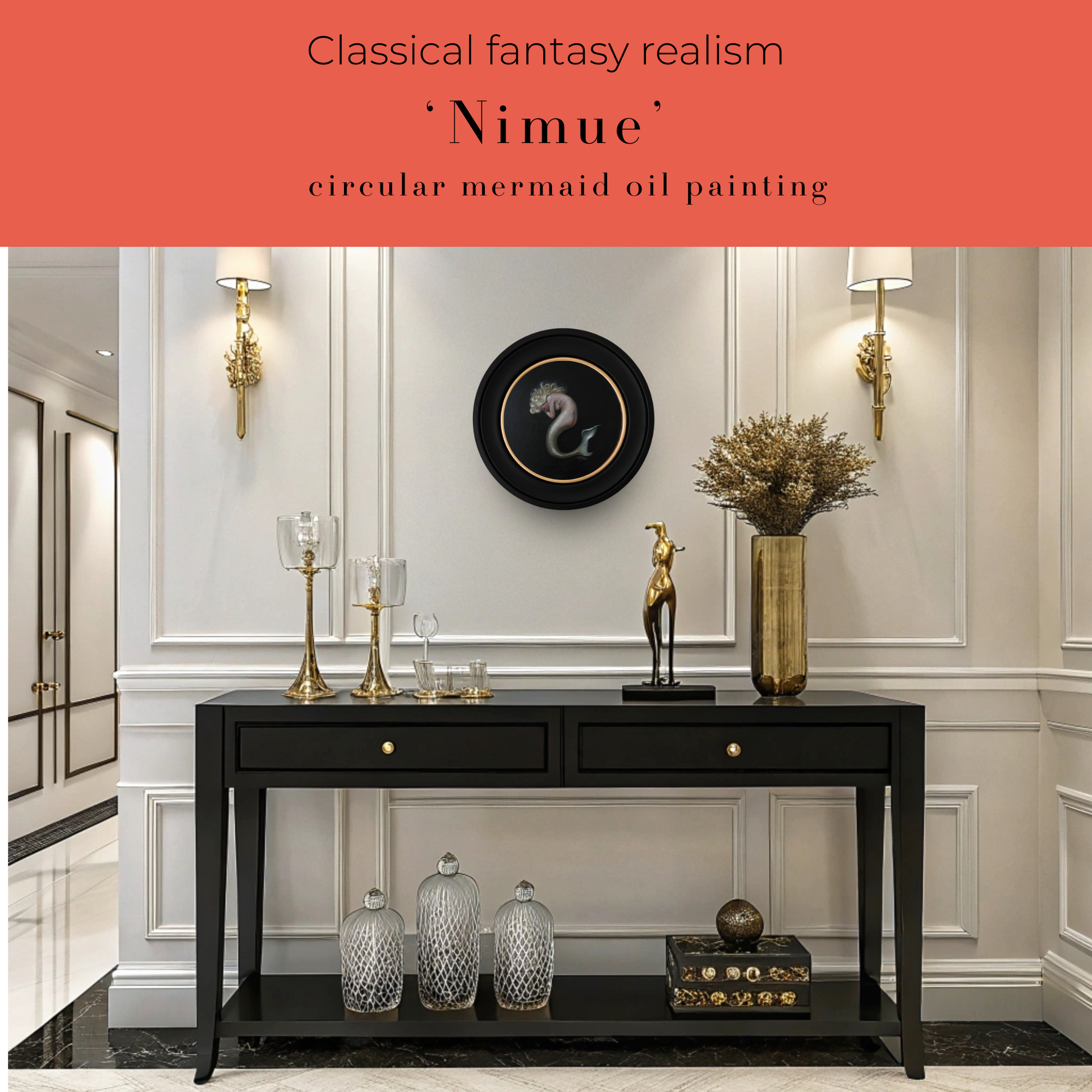 Nimue, mermaid circular oil painting, classical fantasy realism