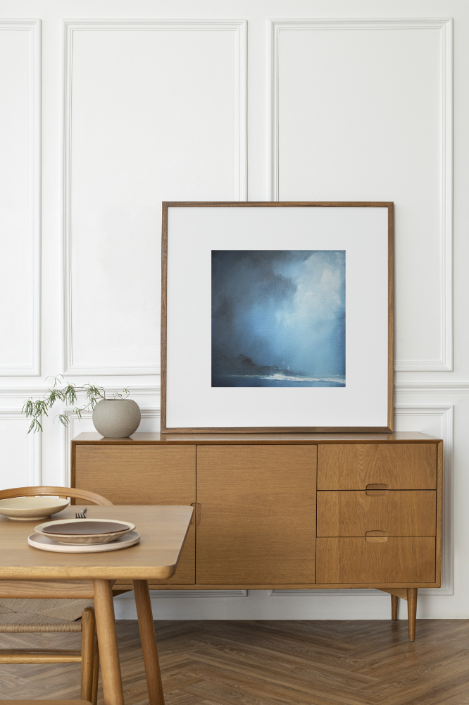 Part of the Moonstone series, Cove reflects the subtle changeability of light and sea. Printed using 12-colour technology on FSC-certified archival paper, this fine art print offers exceptional tonal depth and clarity, ideal for collectors seeking elegant, nature-inspired wall art.